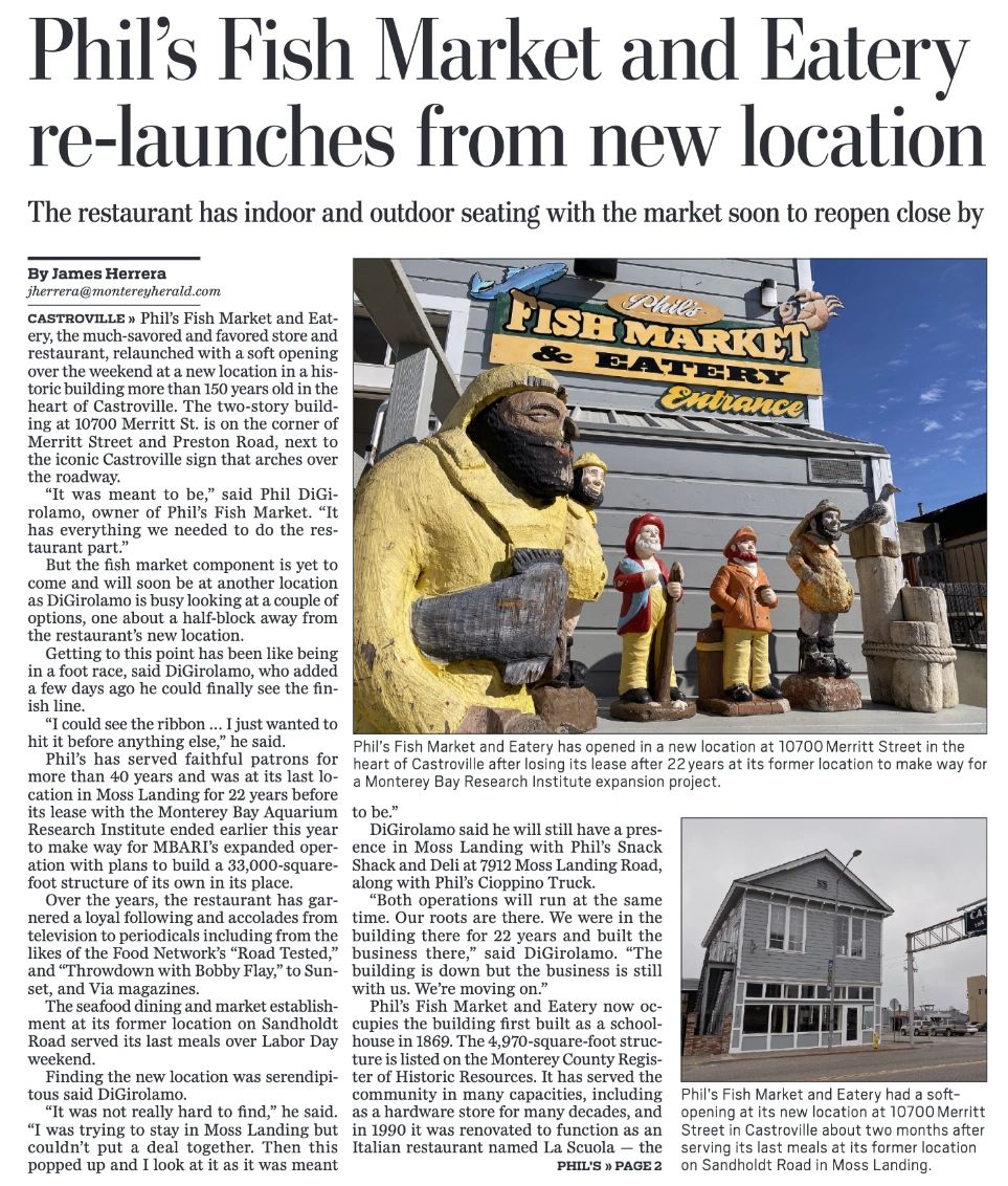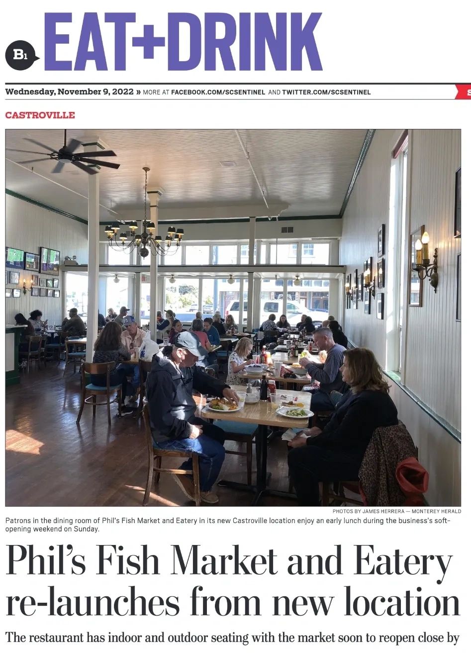 In 2022 we celebrated our 40th anniversary and made a move into our new, historic, location just three miles from our longtime home in Moss Landing. The new Phil’s Fish Market and Eatery is located right next to the iconic Castroville sign and was originally built in 1869 as the first schoolhouse in Castroville. Over our many years on the island of Moss Landing we have witnessed innumerable changes, survived the Loma Prieta earthquake, outgrew our original space and made countless new friends throughout the world by sharing our love for good food. As we embark on our latest chapter we are eternally thankful to continue to bring the freshest seafood to you, our valued customers. We are delighted to have you in our new Castroville location and hope you enjoy your experience with us!
